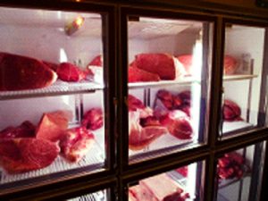 大きな冷蔵庫には新鮮な国産黒毛和牛がスタンバイしています。また、お酒の種類も豊富に取り揃えております。