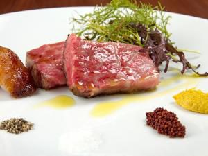 黒毛和牛 イチボのビステッカ フランボワーズビネガーで和えたサラダ添え