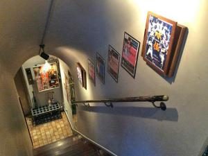 お店に向かう階段にもコレクションが並び、野球ファンの気持ちを高ぶらせる