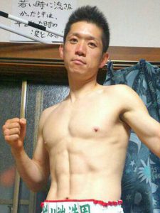 大学時代は農大の大根踊りとトライアスロンに熱中!大学 卒業後、教員生活を七年、しかし、その時の体重は114キロ、そんなある日に百田尚樹原作のボクシングを題材にした映画『ボックス』を見てボクシングで生 徒をインターハイに連れてく指導者を夢に教員を辞め、単身東京へ、なんも無いゼロからのスタートを。たまたま世田谷の居酒屋で心優しい植木屋の親方が可愛 がってくれて植木職人をしながらプロライセンス取得!プロになったのをきっかけに植木屋スポンサーに。ボクシングに向かう背中を献身的に支えてくれたのが 当時看護婦してた奥さんで料理はもちろん減量前の全てをサポート!