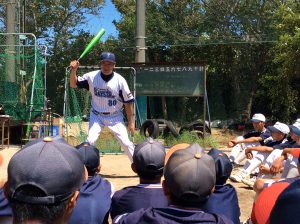 前回と同様、約100名の選手に野球の指導をさせていただきました。
