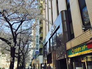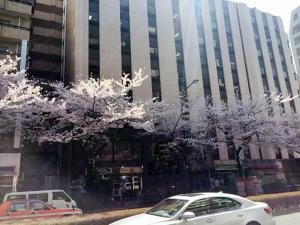 桜が印象的なこのビルでお待ちしております。