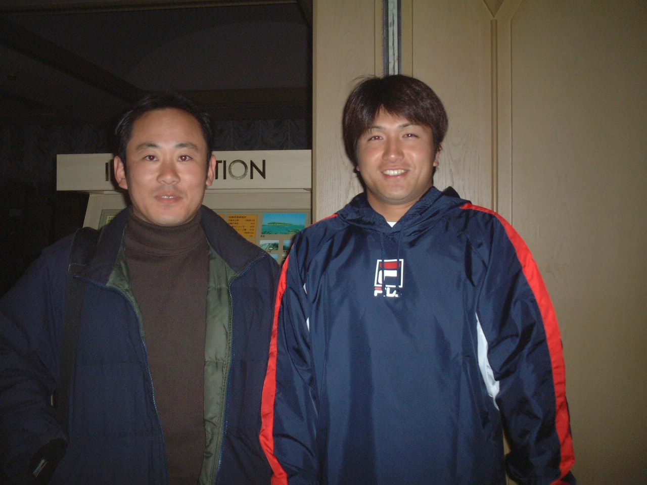 なぜ、高橋さんにだけお願いしたのかは覚えていません。これは2001年、宮崎キャンプの夜、宿舎付近の居酒屋で食事をした後の1枚と思われます。インタビューなど特別な取材ではなかったため、食事をしながらビールを何杯か飲みました。高橋さんはとても聞き上手で、むしろ私ばかりが話していました。新聞社の様子やサラリーマンの生活などが話題になり、私は調子に乗って会社や勤務体制に対する愚痴までこぼしていました。今振り返っても、球界のスーパースターに聞かせるような話ではなかったと、自分が恥ずかしくなります。