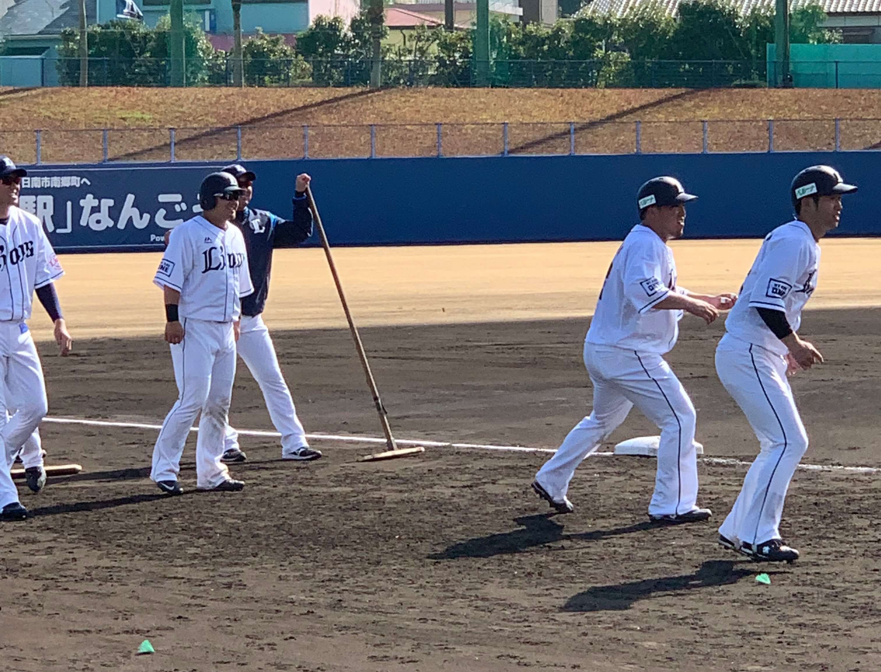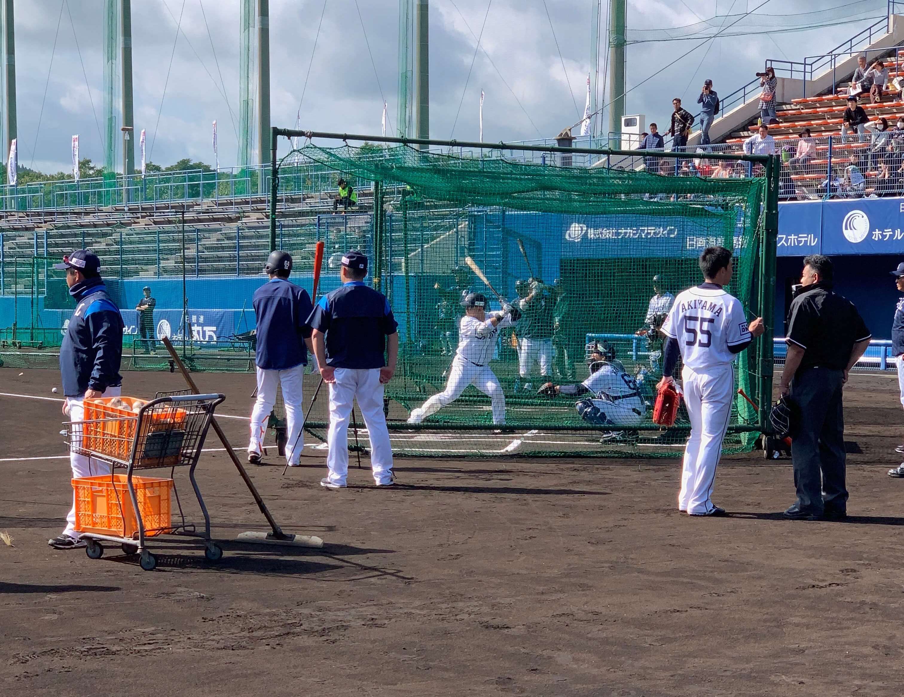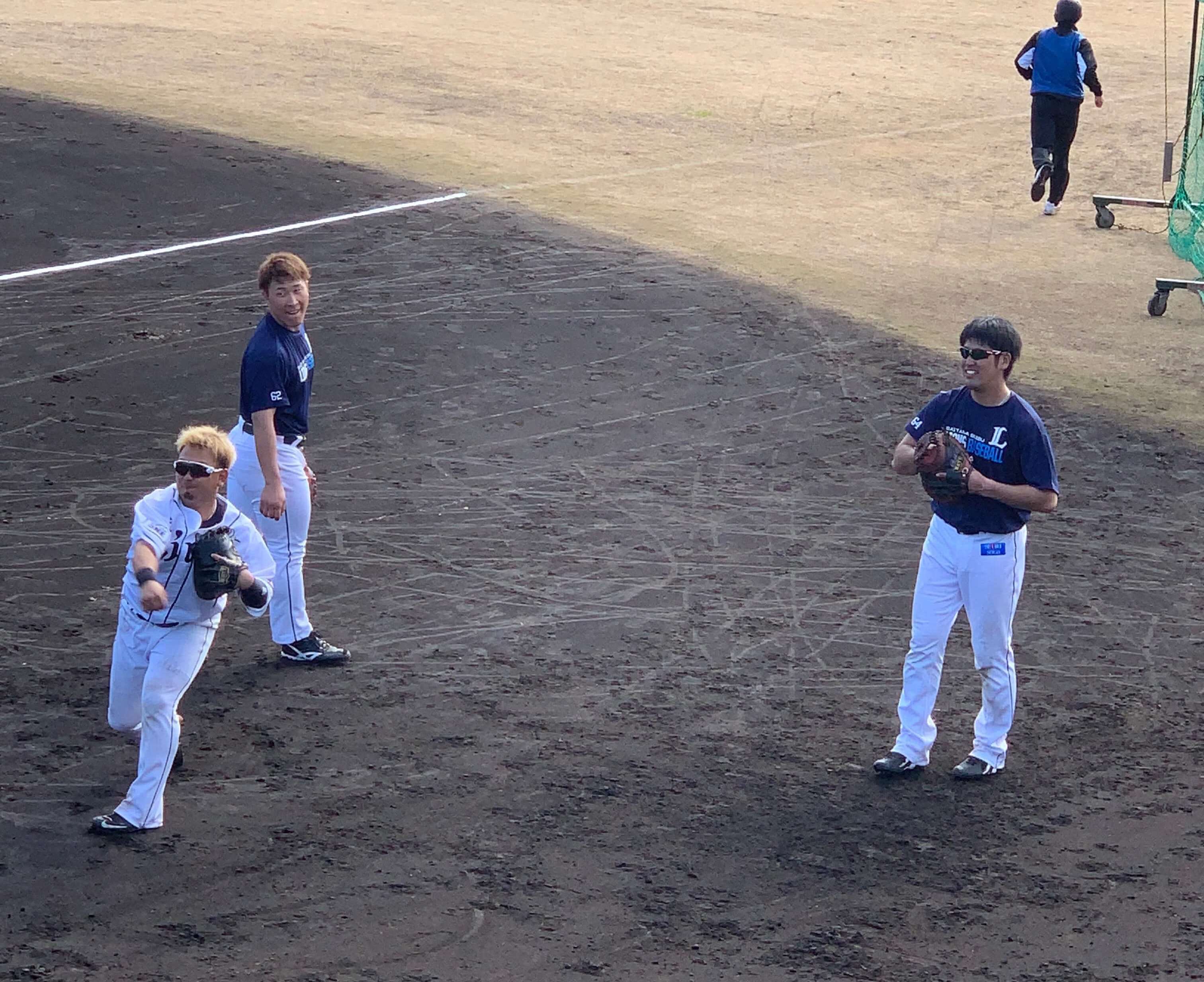 球団関係者に二塁手を外崎選手と争っている新戦力の山野辺選手の話を聞いたところ評価は上々、そして特打開始。