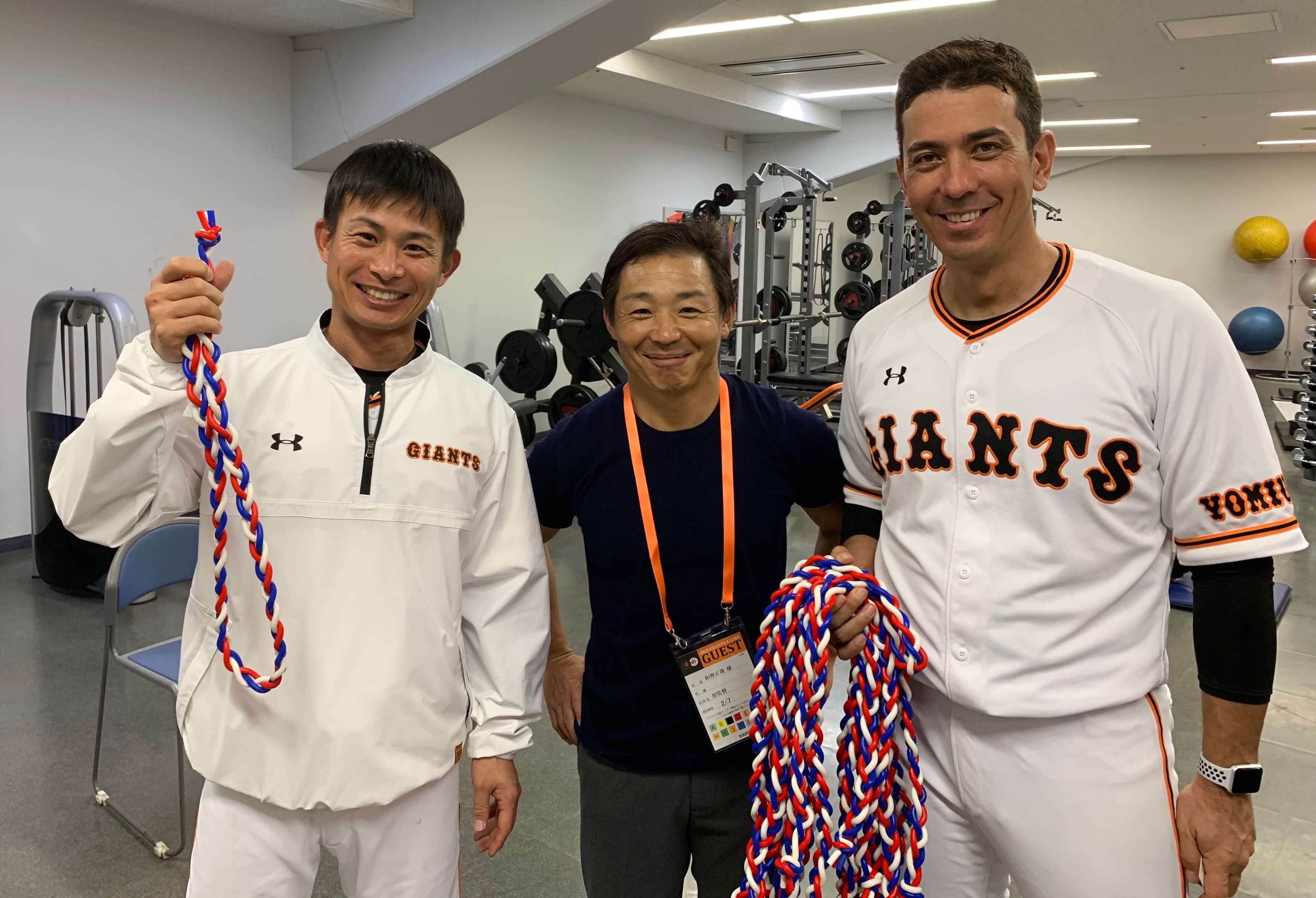 たまたま休憩中の元木コーチにもPR。元木コーチも気に入ってくれて一本贈呈。